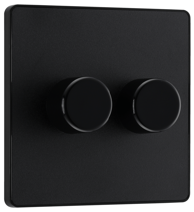 BG's Evolve range a stylish, modern design, with screwless front plate that clips on and off, ideal for redecoration. 200W 2 Gang 2 Way Push Type Dimmer Switch in Matt Black. General Informa ... Read More