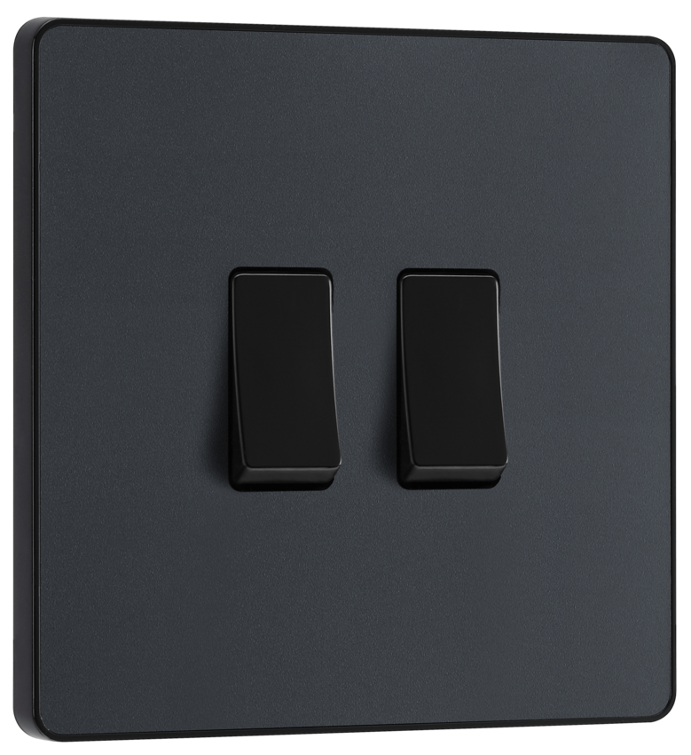 BG's Evolve range a stylish, modern design, with screwless front plate that clips on and off, ideal for redecoration. 20A 2 Gang 2 Way Plate Switch in Matt Grey. General Information Plate Di ... Read More