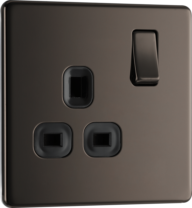 13A Single Switched Socket in Black Nickel.