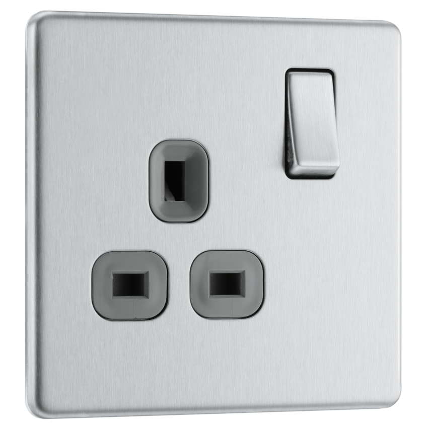 BG's Flatplate Screwless range a slimline design, easy to clip on and off and will add a modern finish to internal environments. 13A Single Switched Socket in Brushed Steel. Gener ... Read More