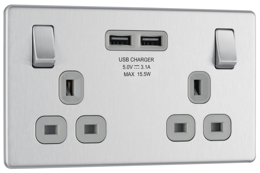 BG's Flatplate Screwless range a slimline design, easy to clip on and off and will add a modern finish to internal environments. 2 Gang 2USB 3.1A Switched Socket in Brushed Steel. ... Read More