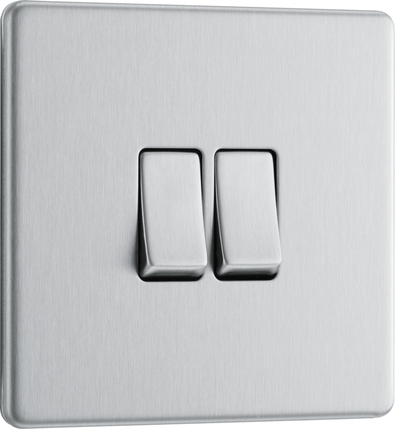 BG Flatplate FBS42 Screwless 20A 2G 2Way Plate Switch - Brushed Steel
