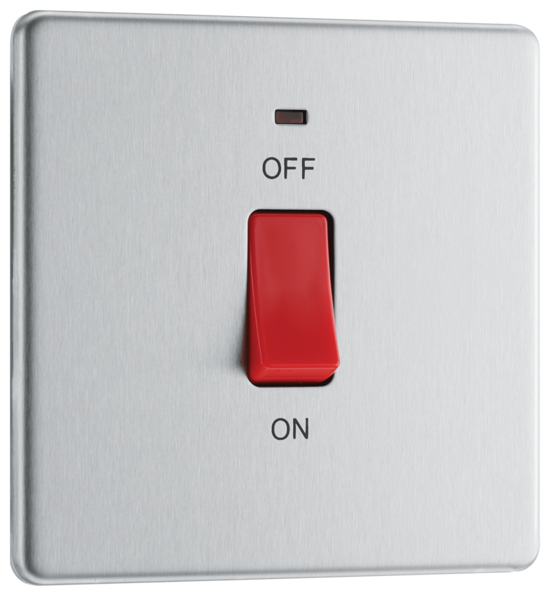 BG Flatplate FBS74 Screwless 45A Single Plate Cooker Switch - Brushed Steel