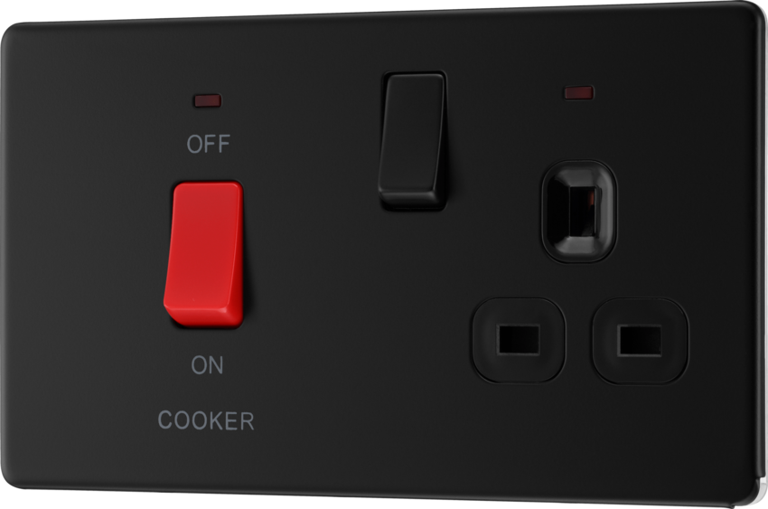 45A Cooker Control Unit with 13A Socket and Power Indicator in Matt Black.