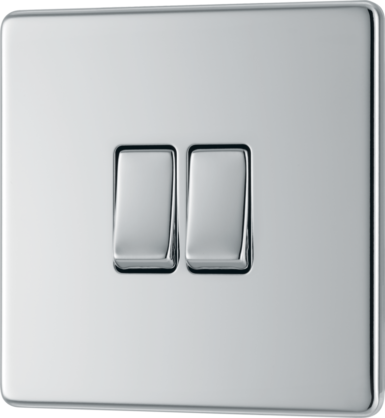 20A 2 Gang 2 Way Plate Switch in Polished Chrome.