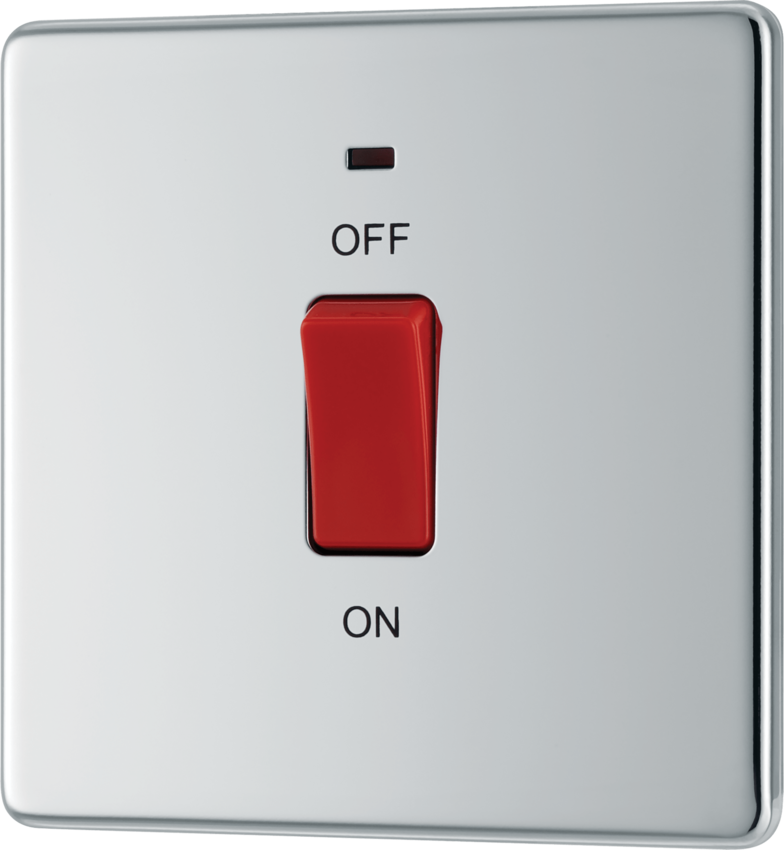 45A Single Plate Cooker Switch with Power Indicator in Polished Chrome.