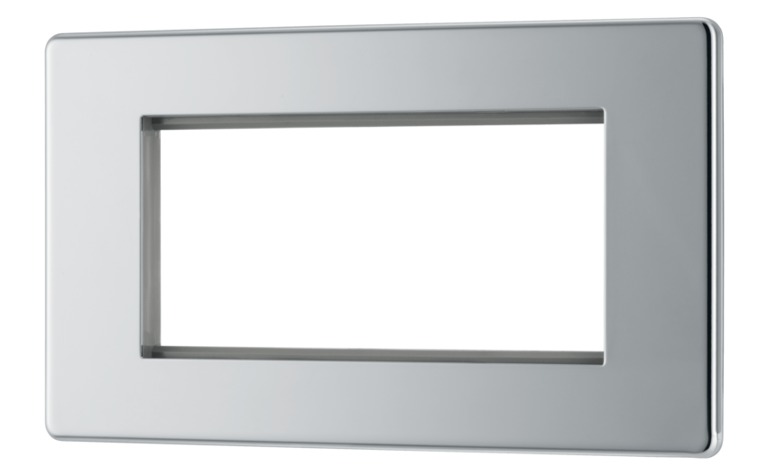 BG's Flatplate Screwless range a slimline design, easy to clip on and off and will add a modern finish to internal environments. Euro Module Quad Double Front Plate in Polished Chrome. ... Read More
