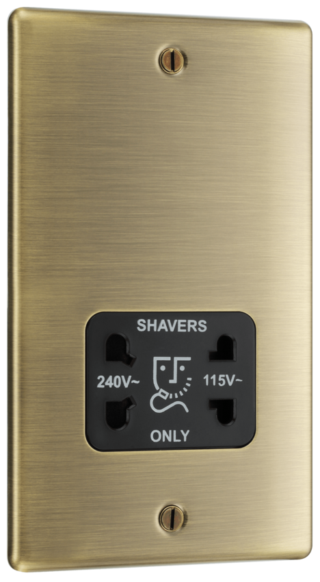 115/230V Dual Voltage Shaver Socket in Antique Brass.