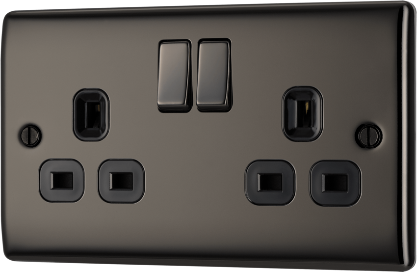 13A Twin Switched Socket in Black Nickel.