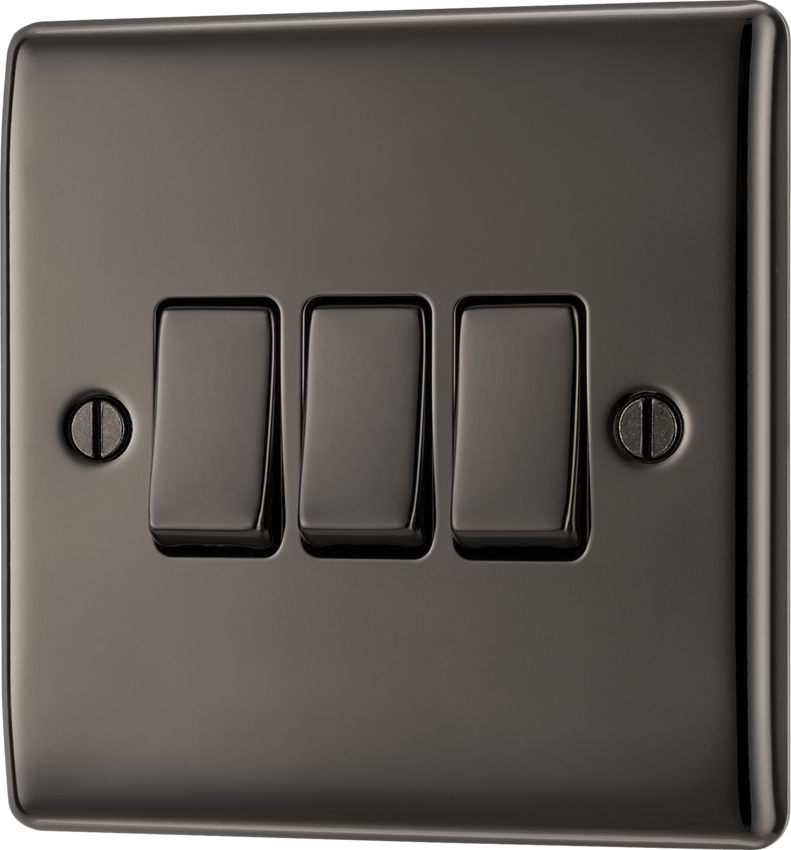 BG's Nexus Metal range is highly popular, boasting a sleek design that compliments all interior environments. 20A 3 Gang 2 Way Plate Switch in Black Nickel. General Information Plate Dimensi ... Read More
