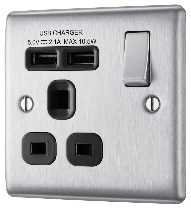 BG's Nexus Metal range is highly popular, boasting a sleek design that compliments all interior environments. 1 Gang 2USB 2.1A Switched Socket in Brushed Steel. General Information Plate Dim ... Read More