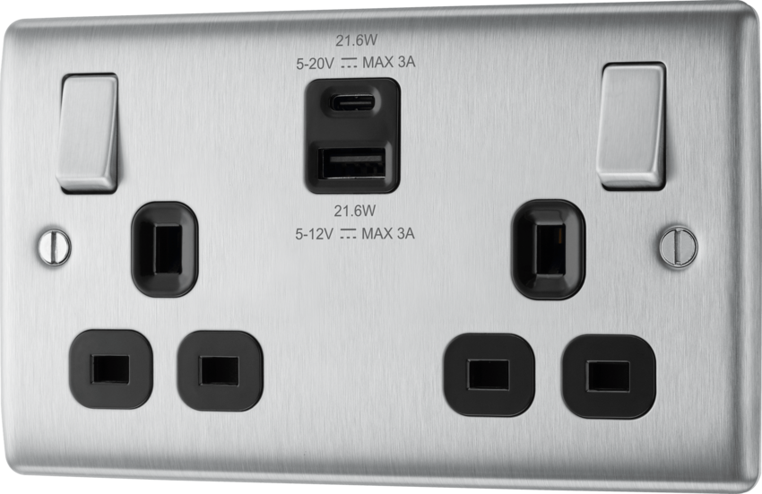 BG's Nexus Metal range is highly popular, boasting a sleek design that compliments all interior environments. Double Socket 13A with 22W Type A + C USB in Brushed Steel. General Information ... Read More
