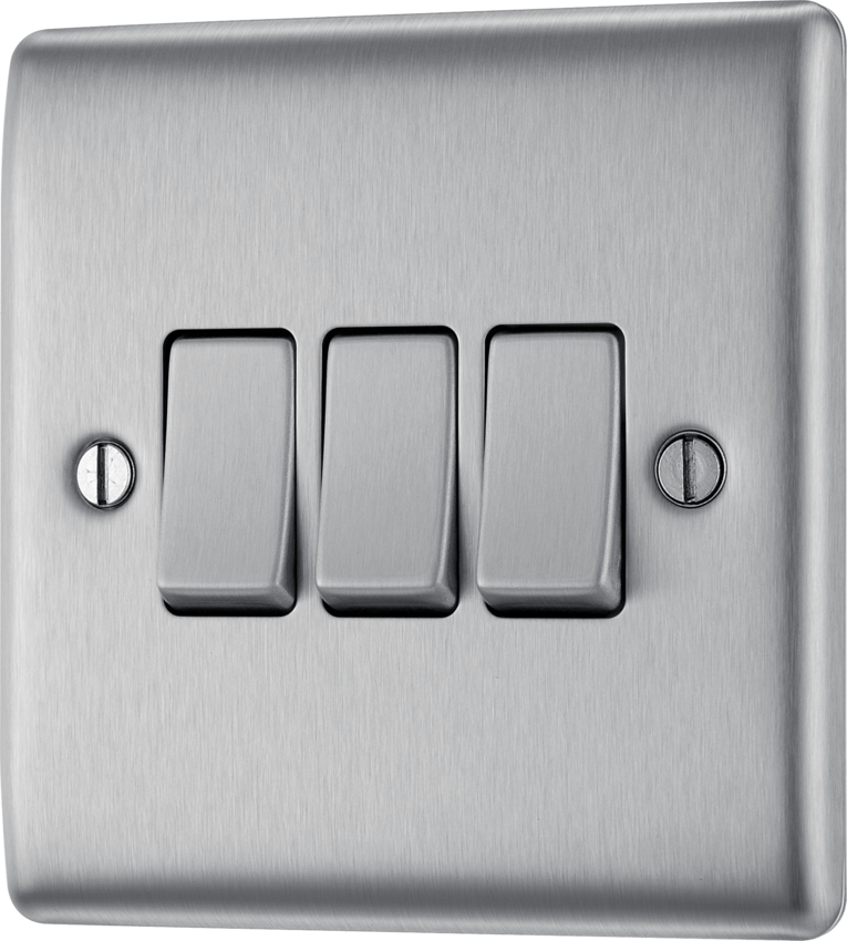 BG's Nexus Metal range is highly popular, boasting a sleek design that compliments all interior environments. 20A 3 Gang 2 Way Plate Switch in Brushed Steel. General Information Plate Dimens ... Read More