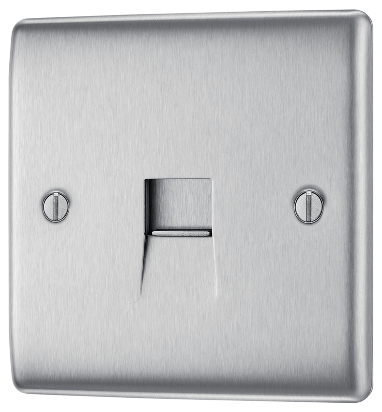 BG's Nexus Metal range is highly popular, boasting a sleek design that compliments all interior environments. 1 Gang Telephone Slave Socket in Brushed Steel. General Information Plate Dimens ... Read More