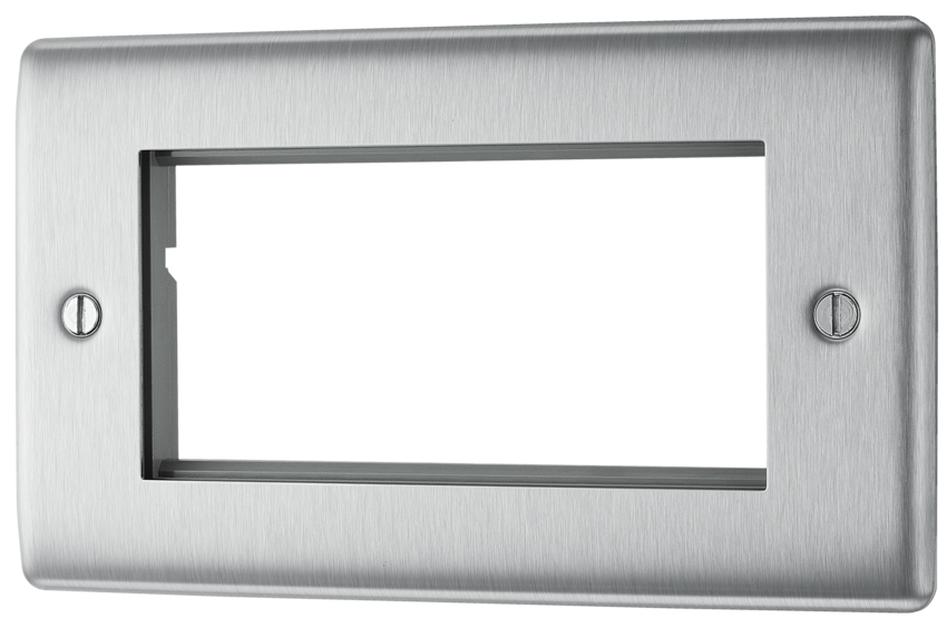BG Nexus NBSEMR4 Euro Module Quad Double Front Plate - Brushed Steel