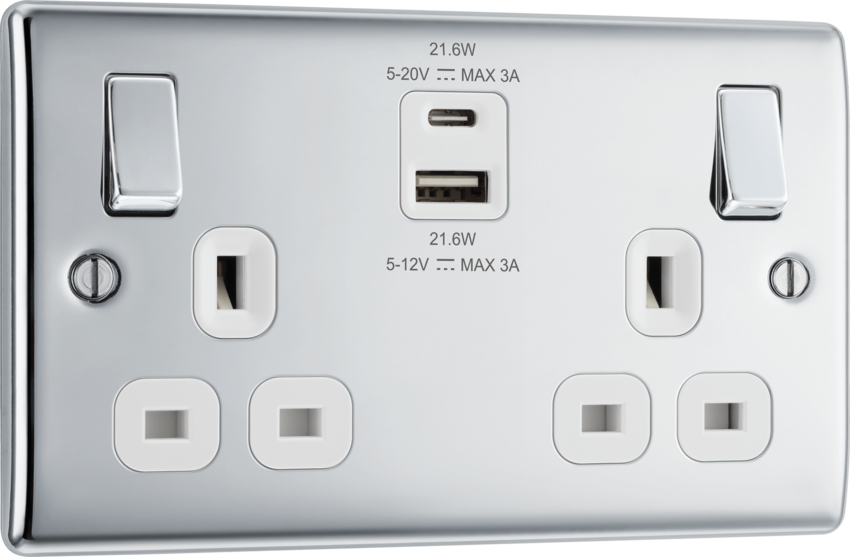 BG's Nexus Metal range is highly popular, boasting a sleek design that compliments all interior environments. Double Socket 13A with 22W Type A + C USB in Polished Chrome. General Informatio ... Read More