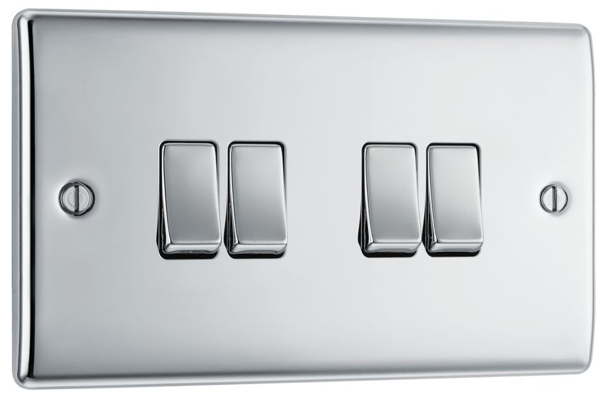 20A 4 Gang 2 Way Plate Switch in Polished Chrome.