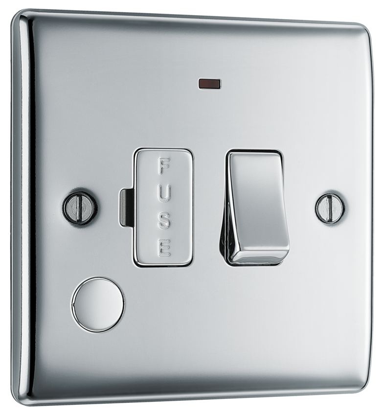 13A Switched Fused Spur with Power Indicator & Cable Outlet in Polished Chrome.