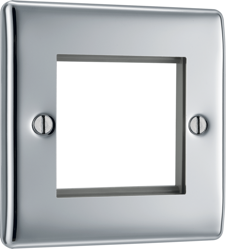 BG's Nexus Metal range is highly popular, boasting a sleek design that compliments all interior environments. Euro Module Twin Front Plate in Polished Chrome. General Information Plate Dimen ... Read More