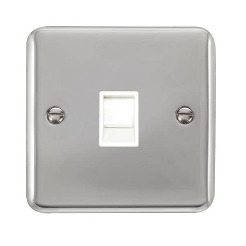 Polished Chrome Single RJ11 Telephone Socket. General Information Plate Dimensions (mm) 88 (W) x 88 (H) x 8 (D) Dimensions With Gasket (mm) 91 (W) x 91 (H) x 9 (D) Plate Fixing Centres - Hor ... Read More