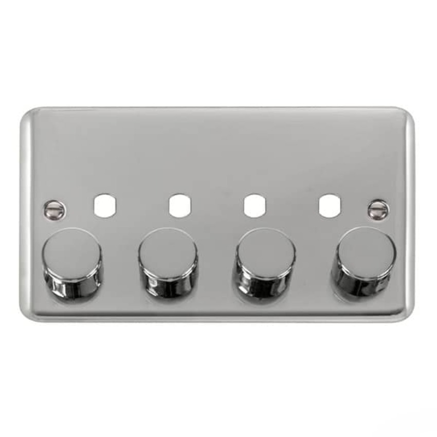 Polished Chrome 2 Gang Unfurnished Dimmer Plate & Knobs (1600W Max) - 4 Apertures.