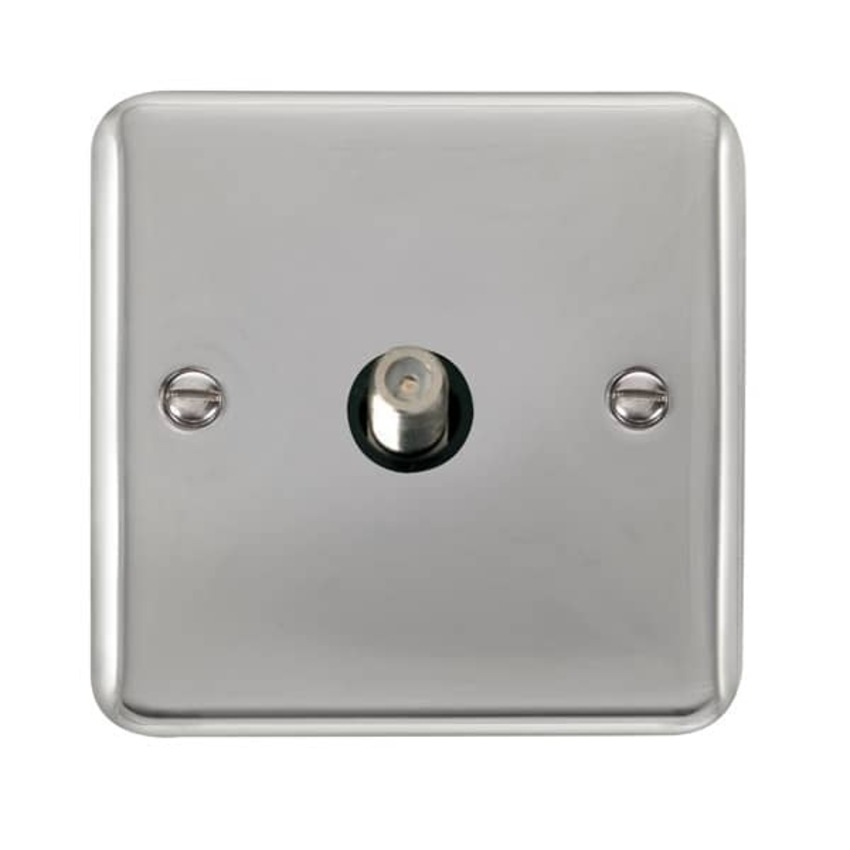 Polished Chrome Non-Isolated Single Satellite Outlet. General Information Plate Dimensions (mm) 88 (W) x 88 (H) x 8 (D) Dimensions With Gasket (mm) 91 (W) x 91 (H) x 9 (D) Plate Fixing Centr ... Read More