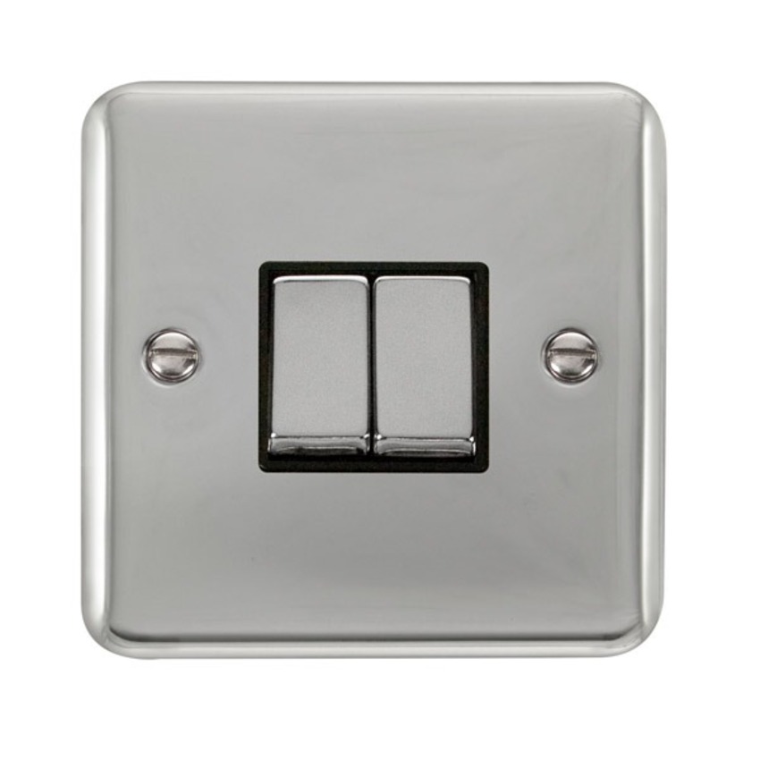 Polished Chrome 10AX Ingot 2 Gang 2 Way Plate Switch.