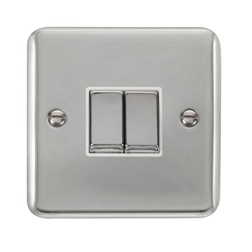 Polished Chrome 10AX Ingot 2 Gang 2 Way Plate Switch.