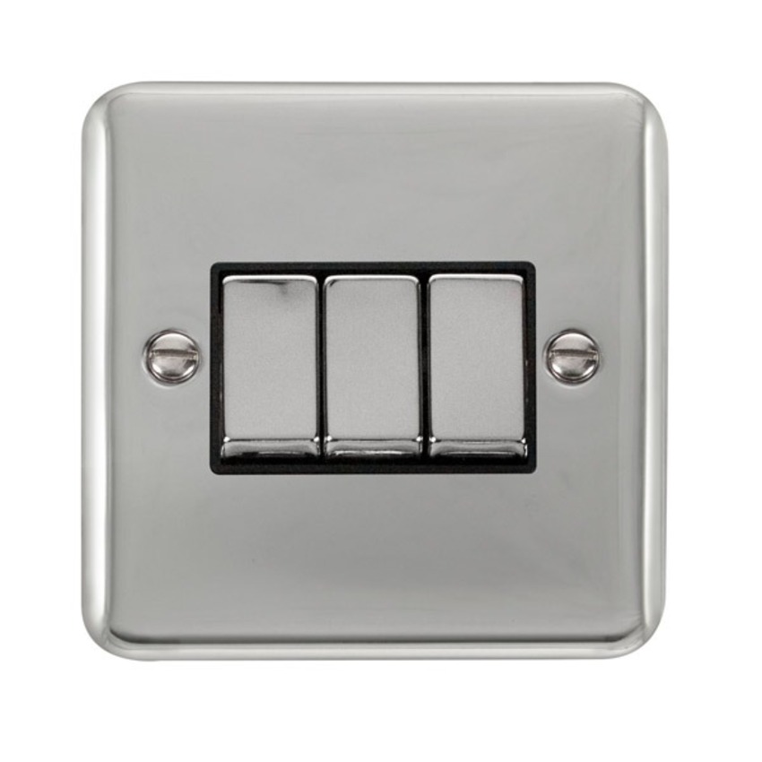 Polished Chrome 10AX Ingot 3 Gang 2 Way Plate Switch.
