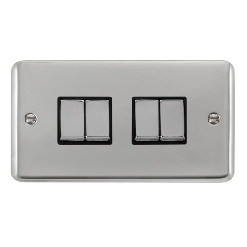 Polished Chrome 10AX Ingot 4 Gang 2 Way Plate Switch.