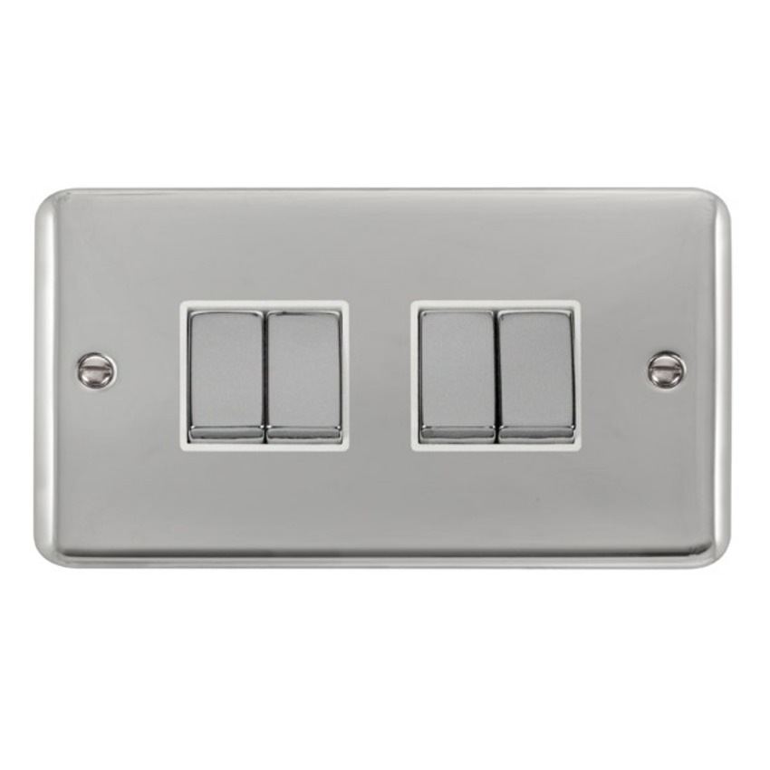 Polished Chrome 10AX Ingot 4 Gang 2 Way Plate Switch.