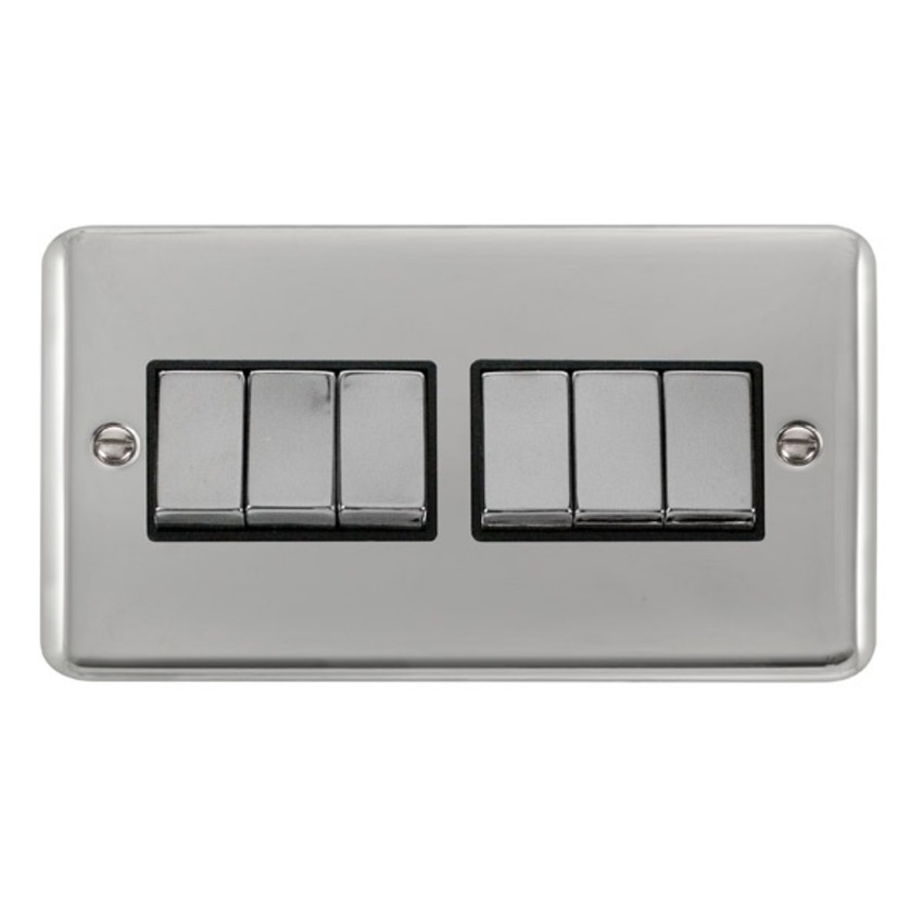 Polished Chrome 10AX Ingot 6 Gang 2 Way Plate Switch.