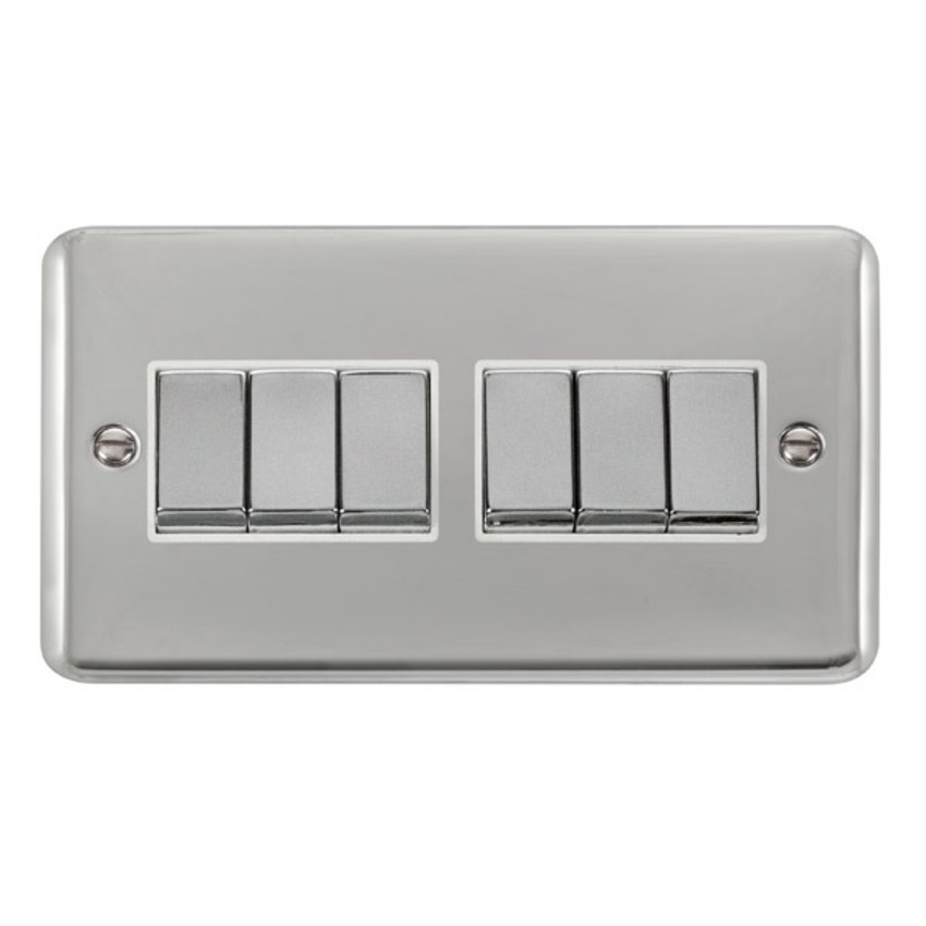Polished Chrome 10AX Ingot 6 Gang 2 Way Plate Switch.