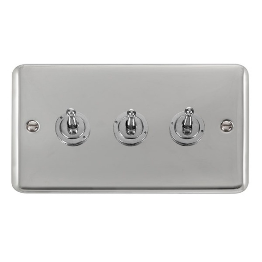 Polished Chrome 10AX 3 Gang 2 Way Toggle Plate Switch.