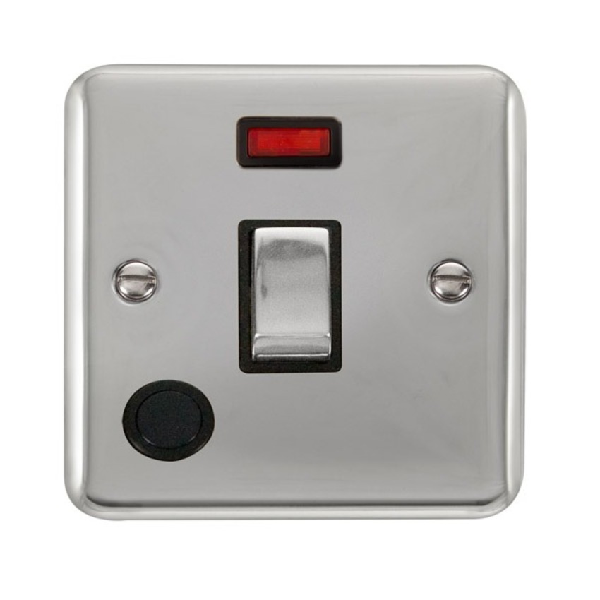 Polished Chrome 20A Ingot Double Pole Plate Switch With Optional Flex Outlet With Neon.
