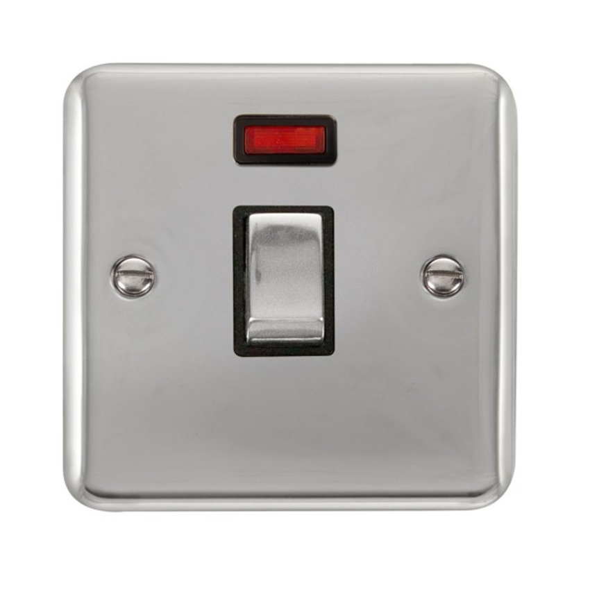 Polished Chrome 20A Ingot Double Pole Plate Switch With Neon.