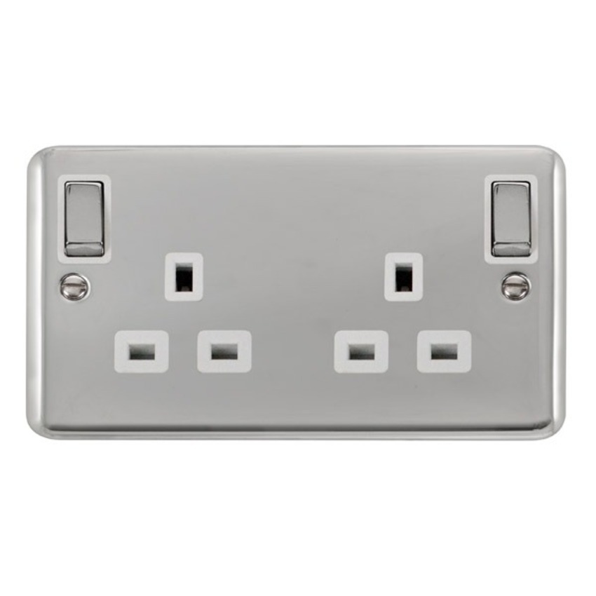Polished Chrome 13A Ingot 2 Gang Double Pole Switched Socket Outlet With Outboard Rockers.