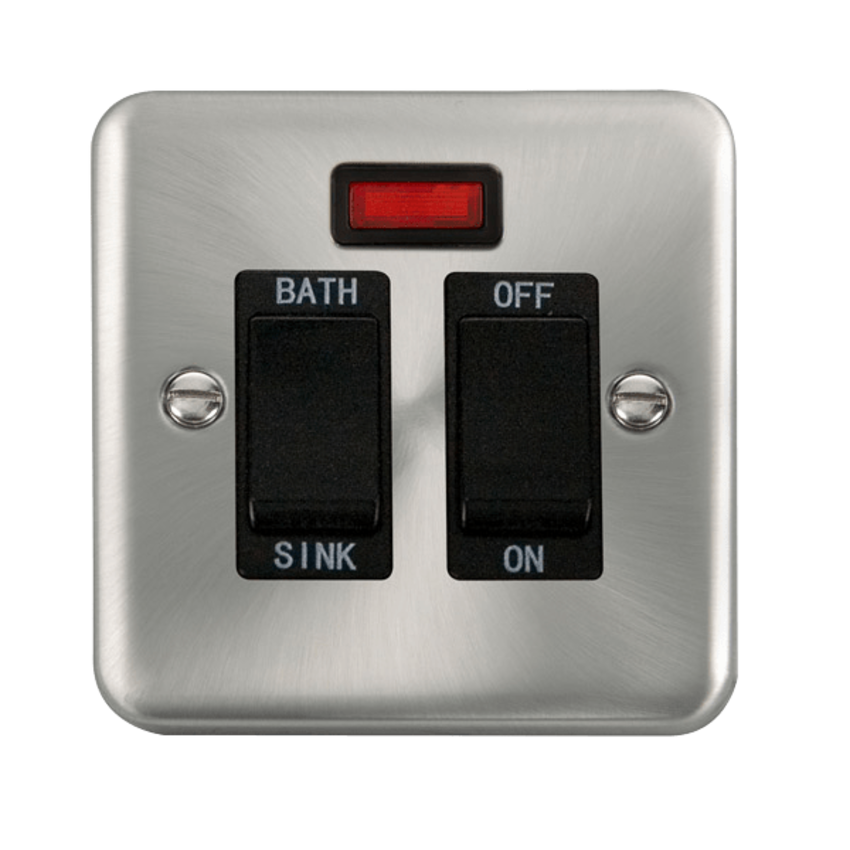 Satin Chrome 20A Double Pole Sink/Bath Plate Switch With Neon.