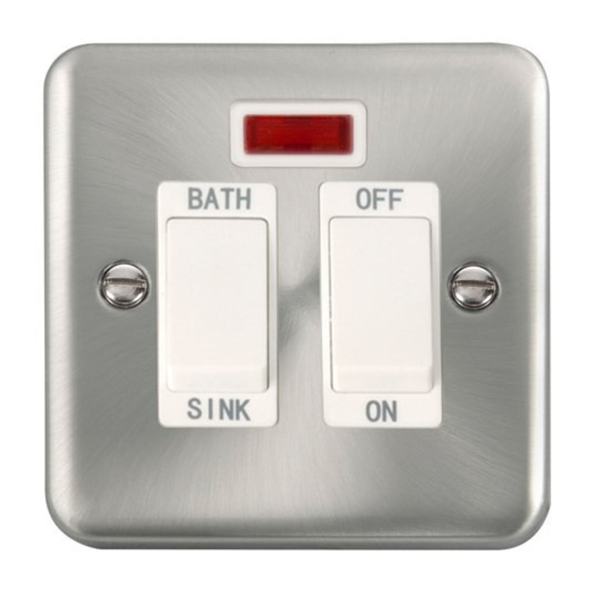 Satin Chrome 20A Double Pole Sink/Bath Plate Switch With Neon.