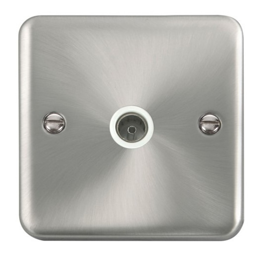 Satin Chrome Single Non-Isolated Coaxial Outlet.