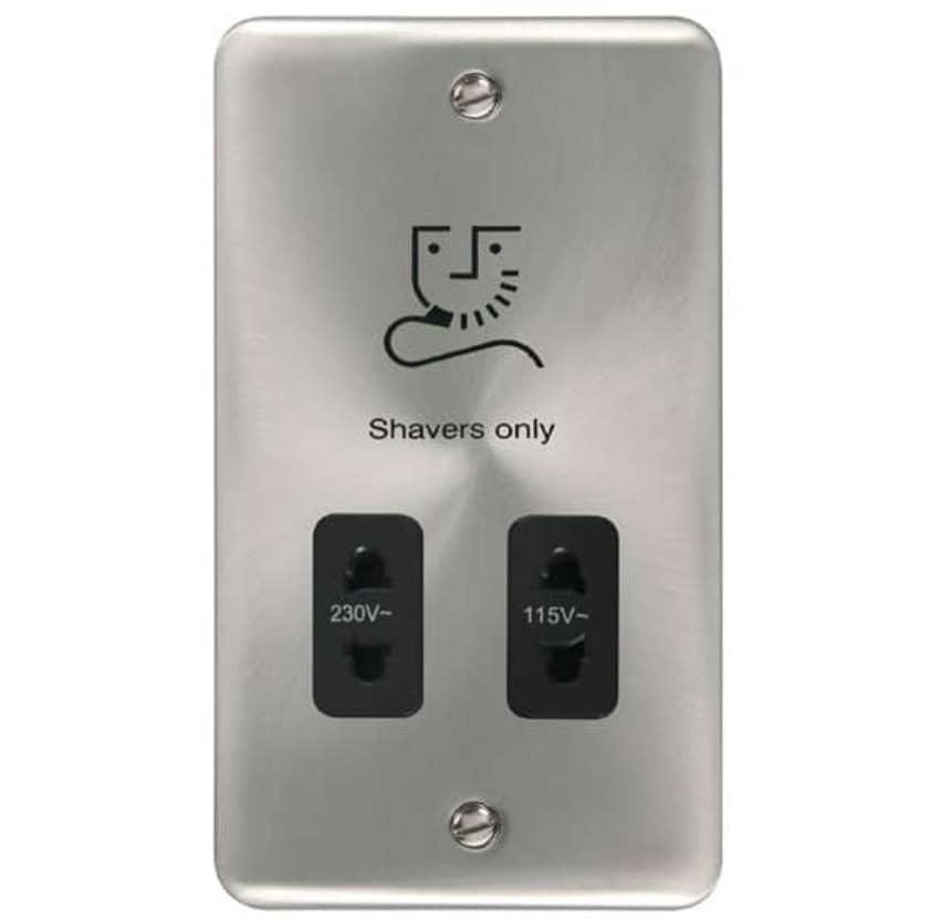 Satin Chrome 115V/230V Dual Voltage Shaver Socket Outlet. General Information Plate Dimensions (mm) 88 (W) x 146 (H) x 8 (D) Dimensions With Gasket (mm) 91 (W) x 149 (H) x 9 (D) Plate Fixing ... Read More