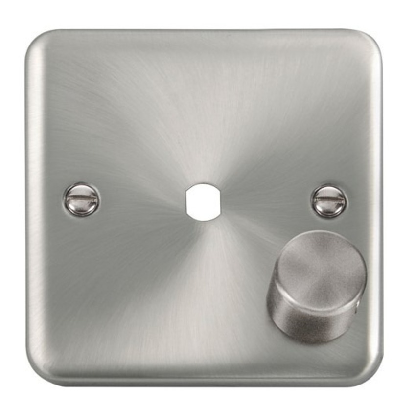 Satin Chrome 1 Gang Unfurnished Dimmer Plate & Knob (650W Max) - 1 Aperture.