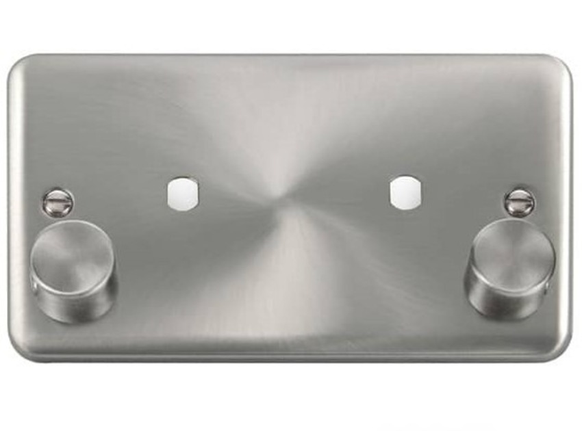 Satin Chrome 2 Gang Unfurnished Dimmer Plate & Knobs (1630W Max) - 2 Apertures.