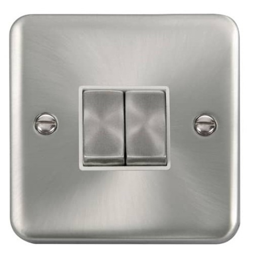 Satin Chrome 10AX Ingot 2 Gang 2 Way Plate Switch.