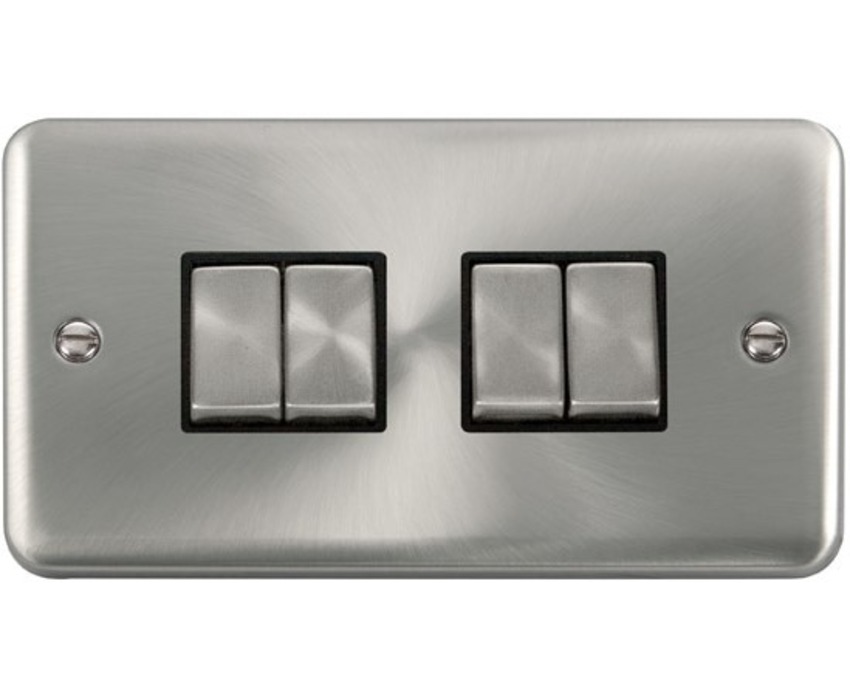 Satin Chrome 10AX Ingot 4 Gang 2 Way Plate Switch.
