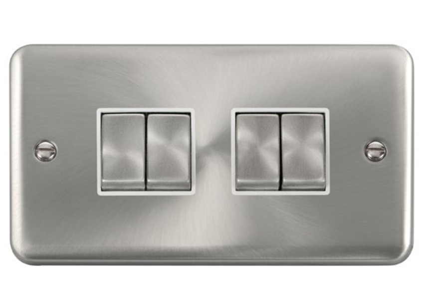 Satin Chrome 10AX Ingot 4 Gang 2 Way Plate Switch.