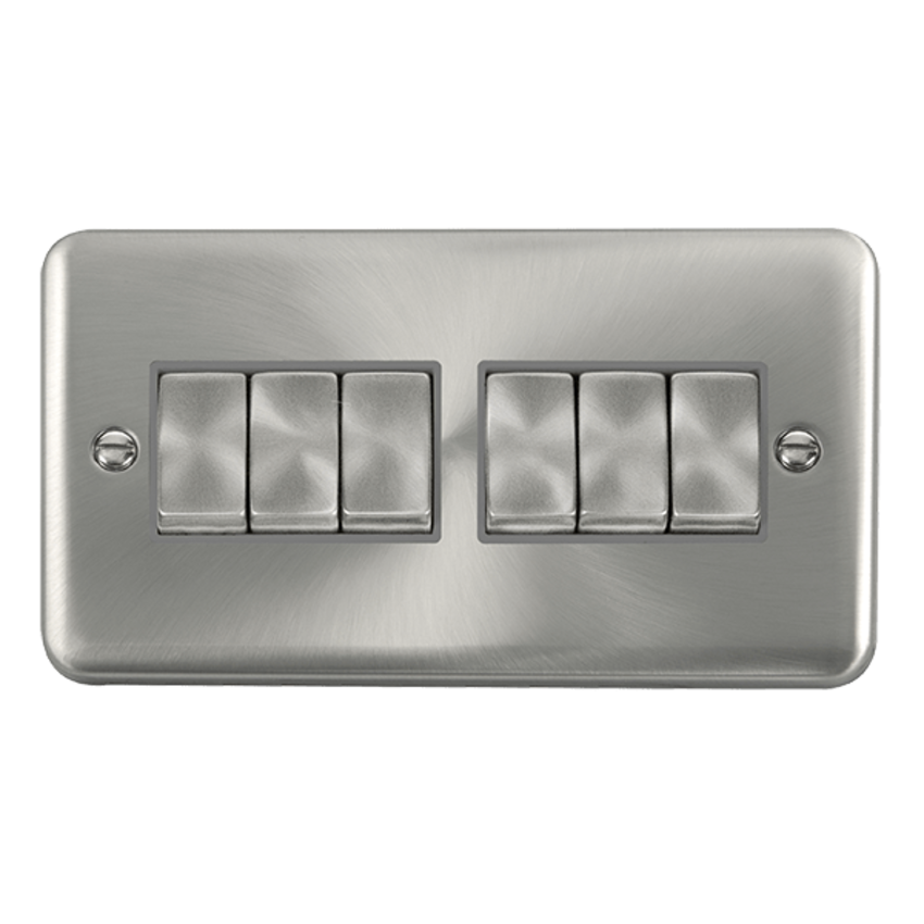 Satin Chrome 10AX Ingot 6 Gang 2 Way Plate Switch.