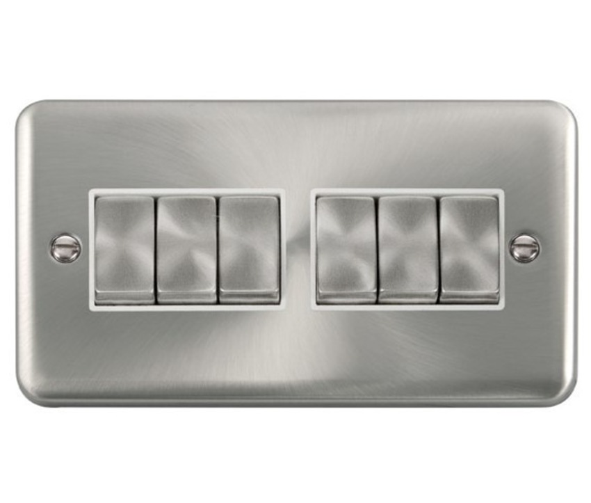 Satin Chrome 10AX Ingot 6 Gang 2 Way Plate Switch.