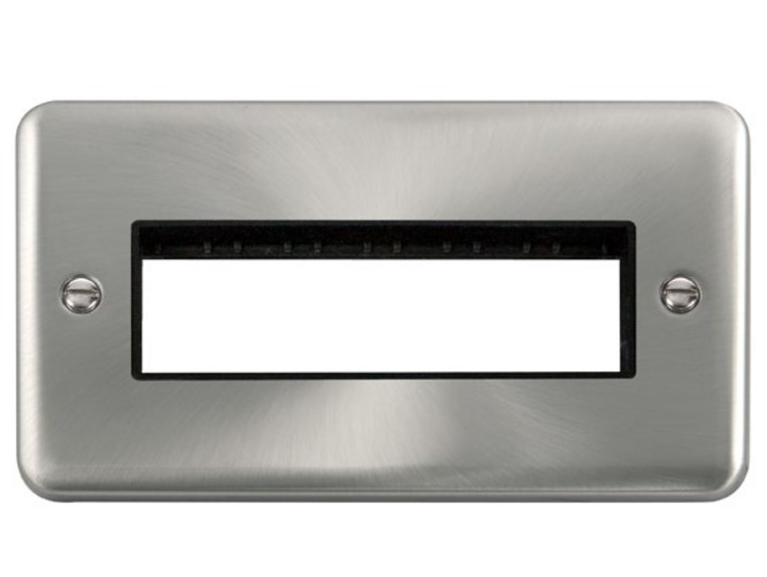 Satin Chrome 2 Gang MiniGrid® Unfurnished Plate - 6 In-Line Apertures.
