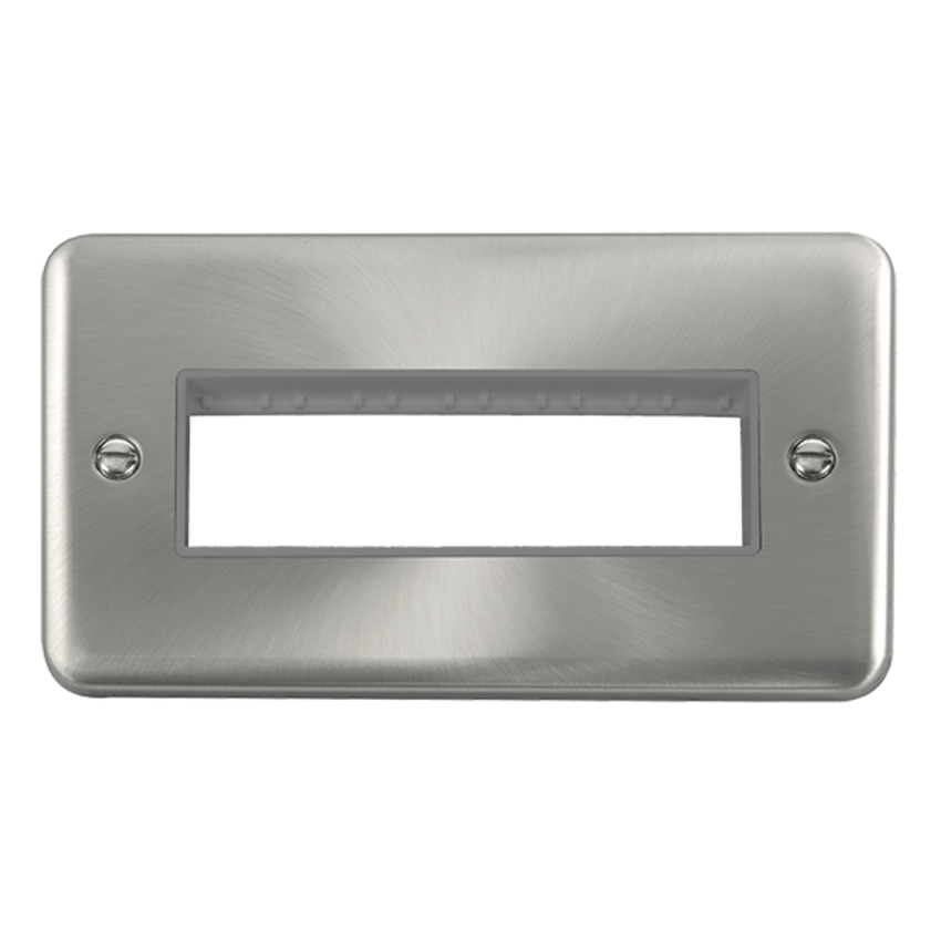 Satin Chrome 2 Gang MiniGrid® Unfurnished Plate - 6 In-Line Apertures.